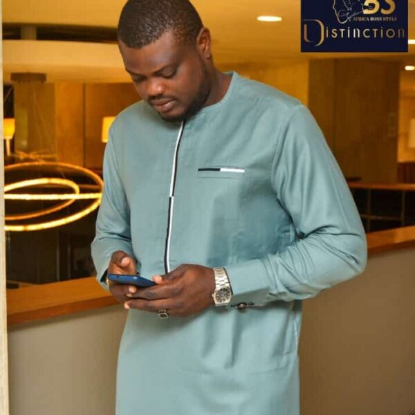 Tenue africaine haut de gamme signée Distinction Africa, allie simplicité, puissance et élégance pour révéler un style masculin affirmé et authentique.