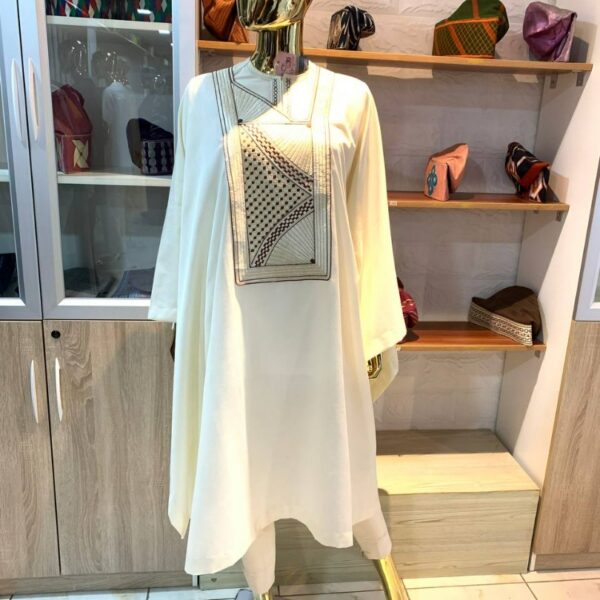 Ce boubou allie prestige, modernité et finesse artisanale. Taillé pour la femme distinguée, il offre un confort aérien et une silhouette majestueuse.