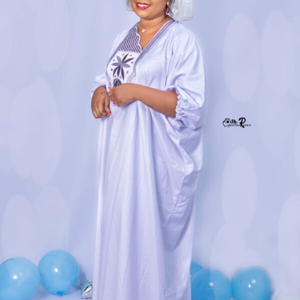 Ce boubou allie prestige, modernité et finesse artisanale. Taillé pour la femme distinguée, il offre un confort aérien et une silhouette majestueuse.