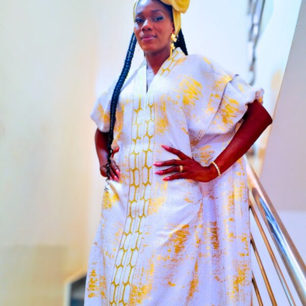 Ce boubou allie prestige, modernité et finesse artisanale. Taillé pour la femme distinguée, il offre un confort aérien et une silhouette majestueuse.